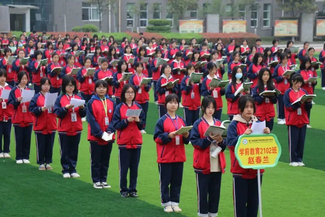 3月24日,南溪职校幼儿保育专业部在操场开展户外晨读活动。