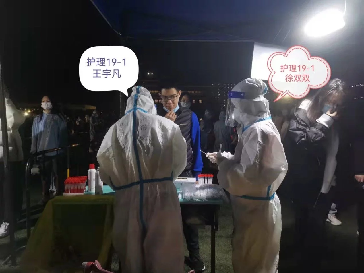 像王依婷一样,还有上海建桥学校健康管理学校王宇凡、徐双双等8名19级的学生主动请缨,发挥护理专业特长,不辞辛苦、已连续三天奋战一线,认真细致地为师生做好核酸检测服务。