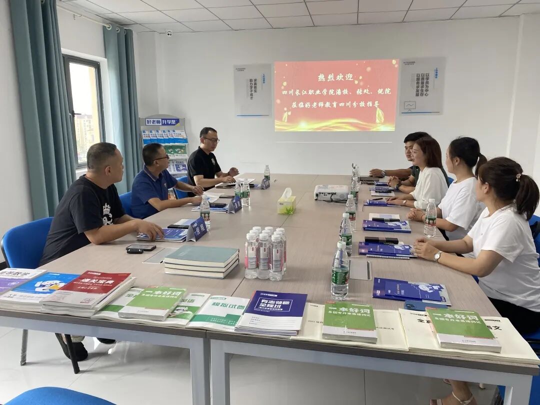2022年8月24日,四川长江职业学校潘校、张处、倪院莅临好老师教育四川分校参观考察,并对专升本校企合作事宜进行了友好的交流座谈。好老师教育四川分校副校长李艳,市场校长向希,市场及公关部负责人陈洋,教学部负责人杨欣,教务校长田琳出席了本次交流会。