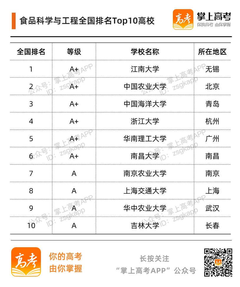 在2021年软科中国大学专业排名榜单中,共有115所院校的食品科学与工程专业上榜。Top 10 院校排名如下: