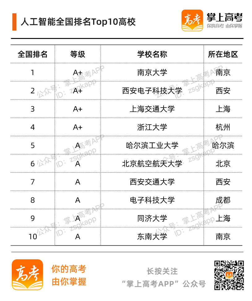 在2021年软科中国大学专业排名榜单中,共有107所院校的人工智能专业上榜。Top 10 院校排名如下: