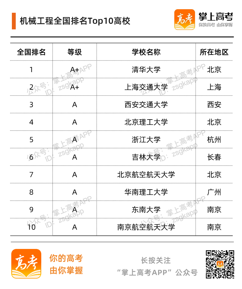 在2021年软科中国大学专业排名榜单中,共有68所院校的机械工程专业上榜。Top 10 院校排名如下: