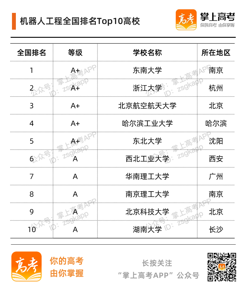 在2021年软科中国大学专业排名榜单中,共有125所院校的机器人工程专业上榜。Top 10 院校排名如下: