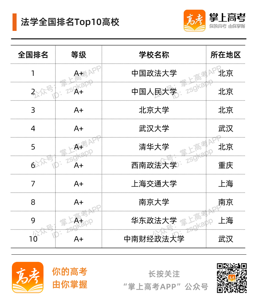 在2021年软科中国大学专业排名榜单中,共有314所院校的法学专业上榜。Top 10 院校排名如下: