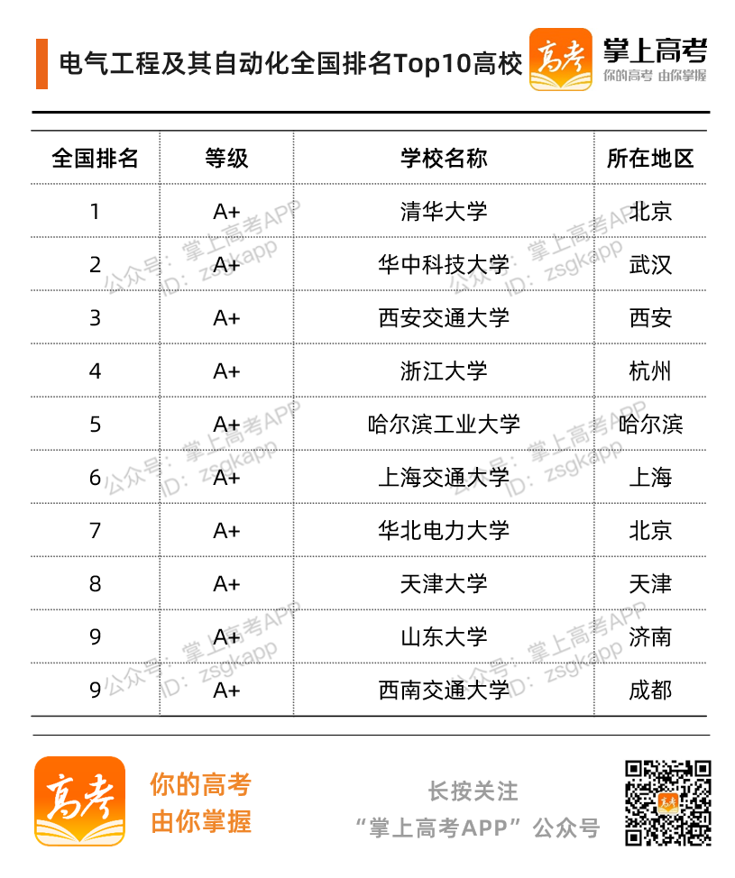 在2021年软科中国大学专业排名榜单中,共有298所院校的电气工程及其自动化专业上榜。Top 10 院校排名如下: