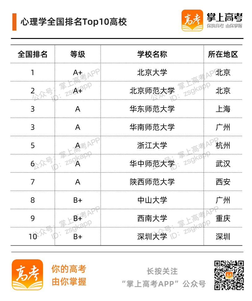 在2021年软科中国大学专业排名榜单中,共有38所院校的心理学专业上榜。Top 10 院校排名如下: