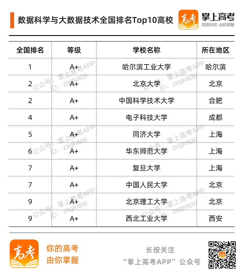 在2021年软科中国大学专业排名榜单中,共有309所院校的数据科学与大数据技术专业上榜。Top 10 院校排名如下: