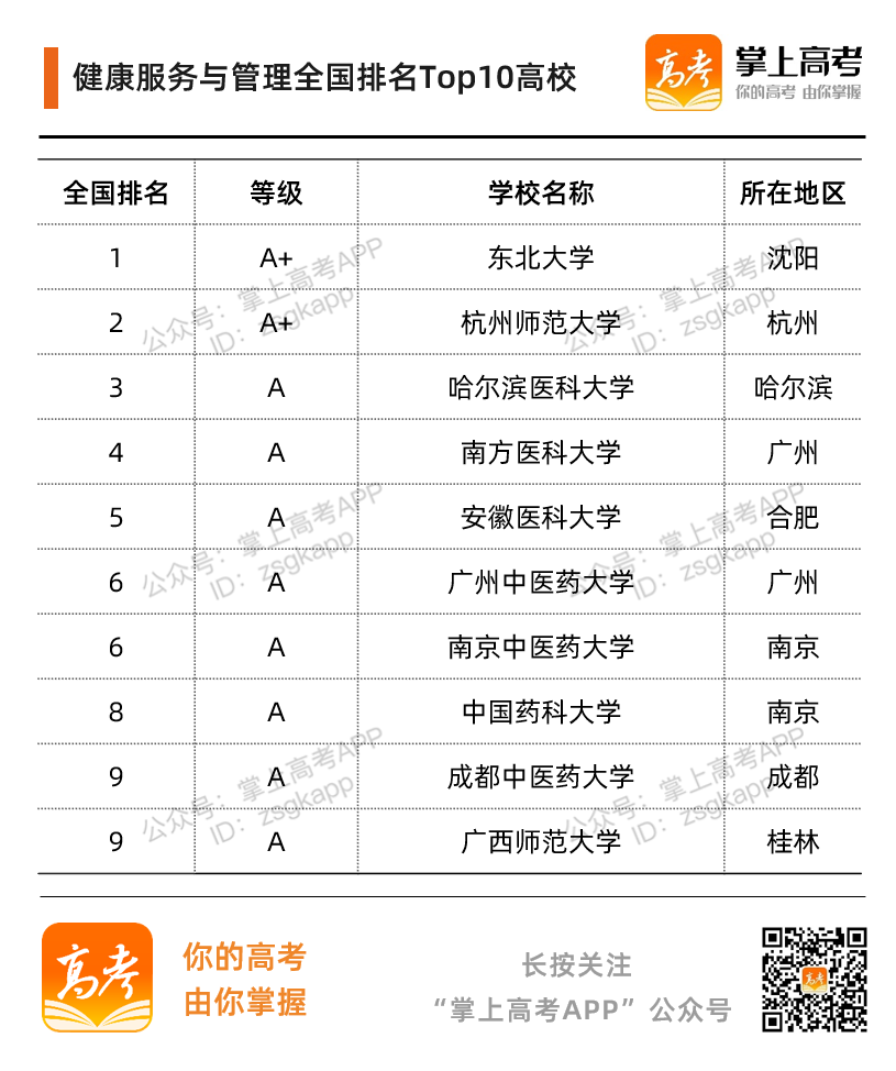 在2021年软科中国大学专业排名榜单中,共有53所院校的健康服务与管理专业上榜。Top 10 院校排名如下: