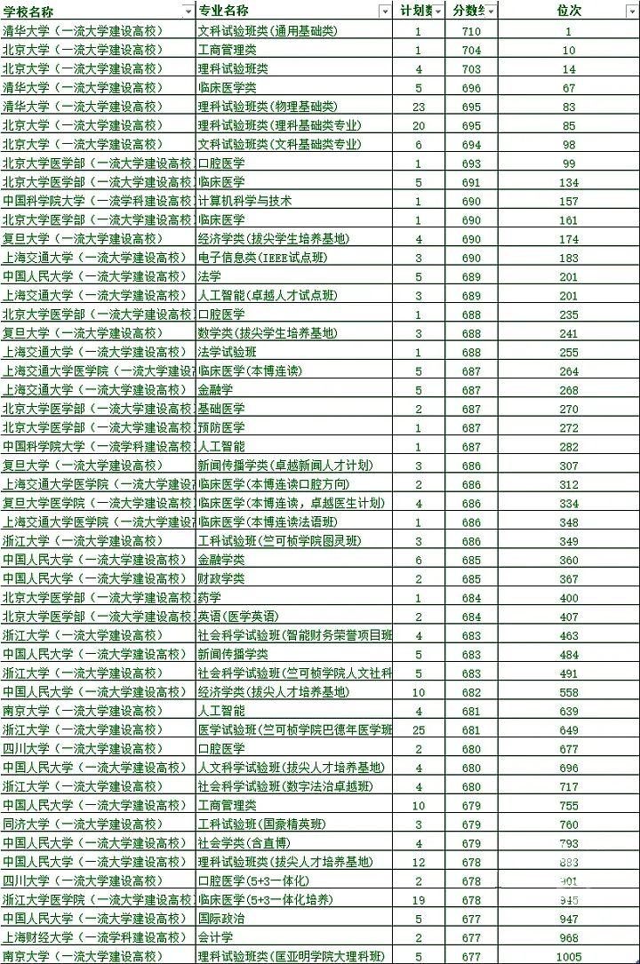 注意:全省前一千名的考生中,很多因为保送或者强基计划等原因,录取信息没有体现在投档线表格上。