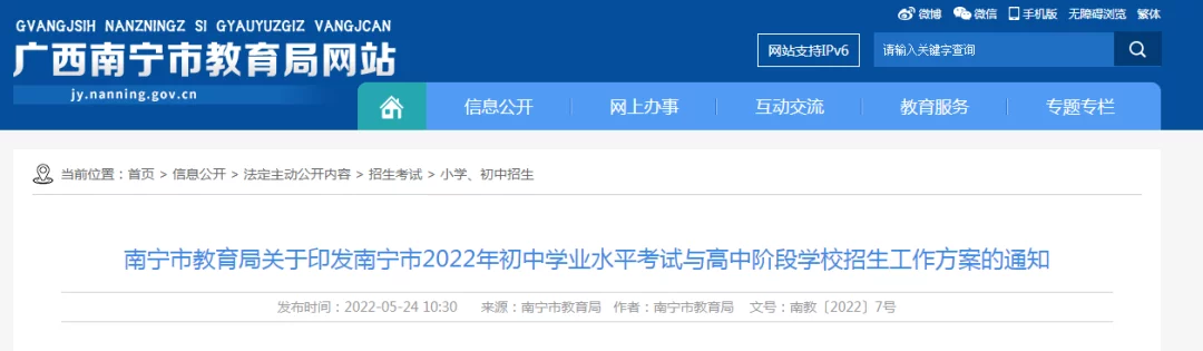 南宁市教育局官网截图