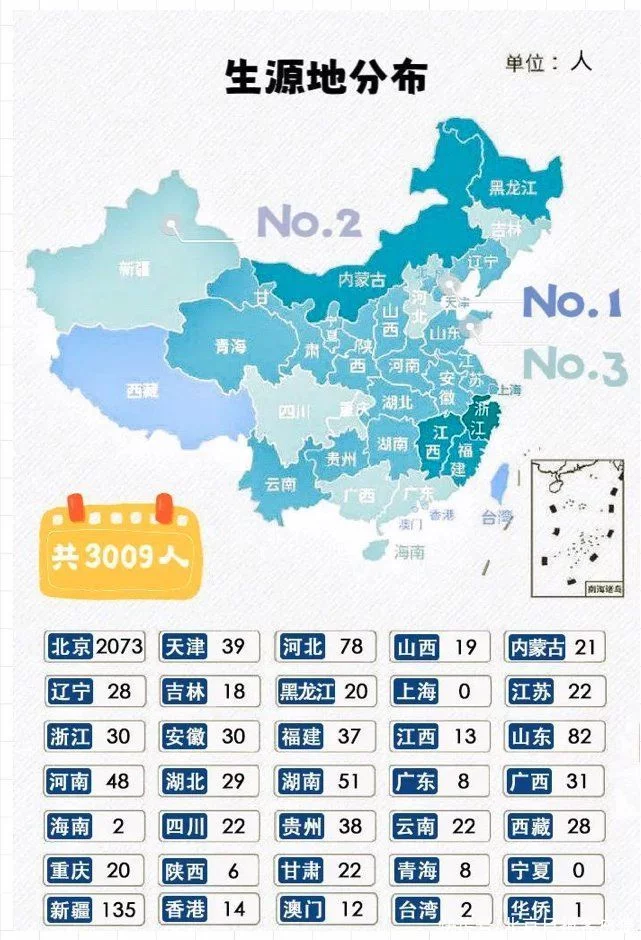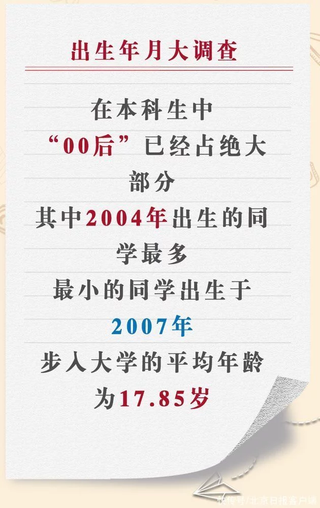 在年龄比例方面,本科生平均17.85岁,最小14岁;硕士生平均24.76岁,最小18岁;博士生平均25.15岁,最小18岁。