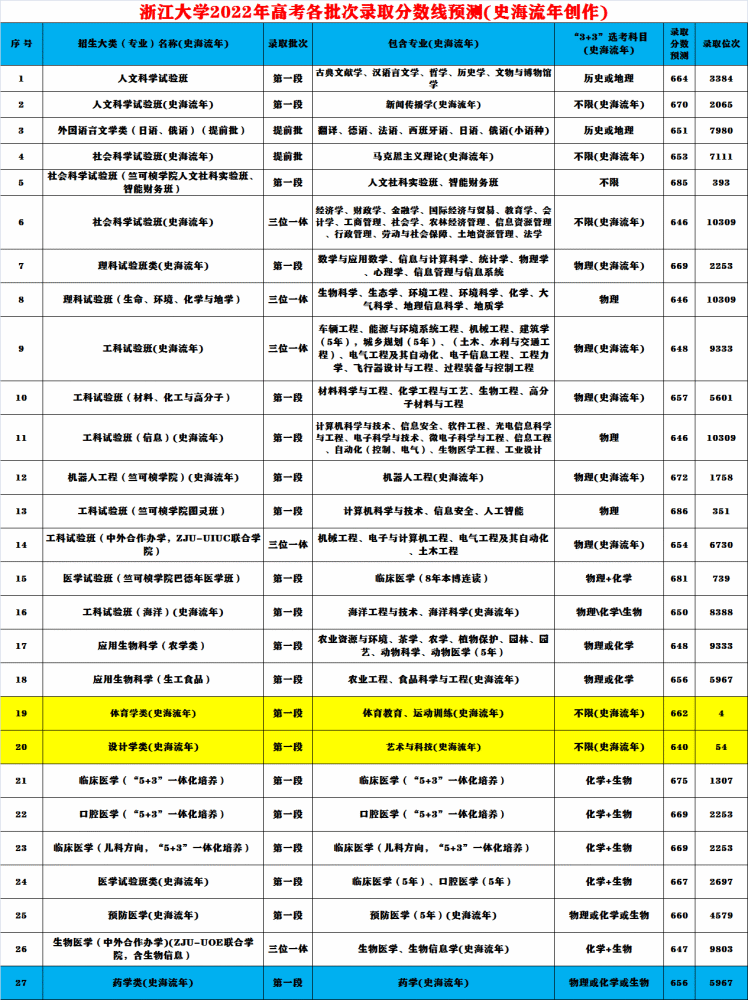 二、浙江大学2022年高考各专业、各批次录取分数线预测