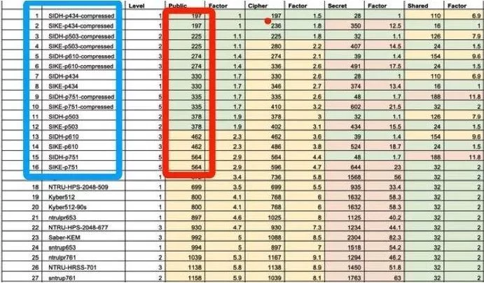 它最大的卖点,在超高的性价比上 —— 安全性很高,而且体积还小。一个由 335 个数字组成的 SIKE 算法,和由 3068 个数字组成的常用算法( RSA 算法 ),安全性是同一级别的。这就好像用十进制来表达二进制的数字,不仅方便,而且更加简洁。在 NIST 收集的 90 多种后量子算法中,SIKE 及其衍生的算法占据了绝对的上风,成为最短后量子密码中的的前 16 强。