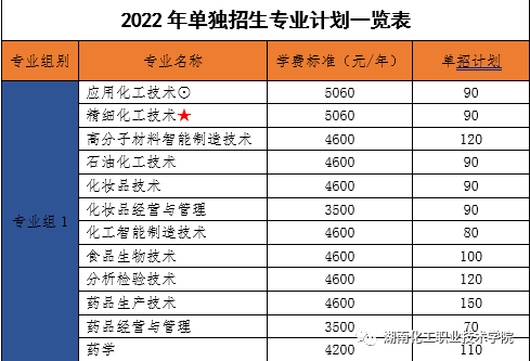 《2022年湖南化工职院技术学校单招方案》