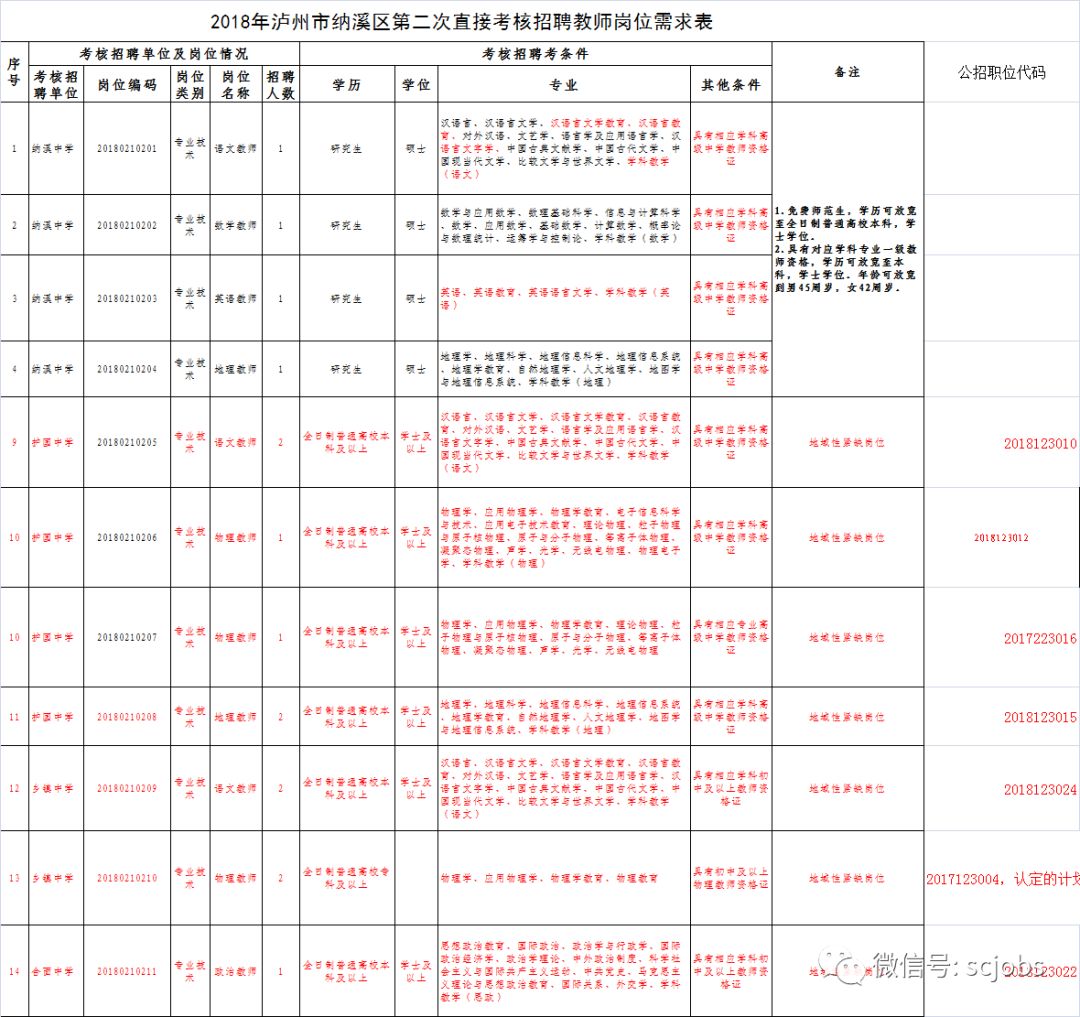 附件:1.2018年泸州市纳溪区第二次直接考核招聘教师岗位需求表.xls