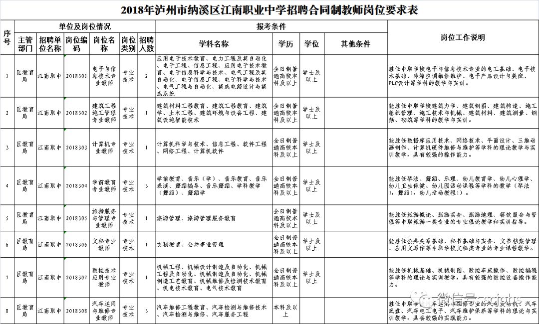 附件:1.2018年泸州市纳溪区江南职业中学招聘合同制教师岗位要求表.xls