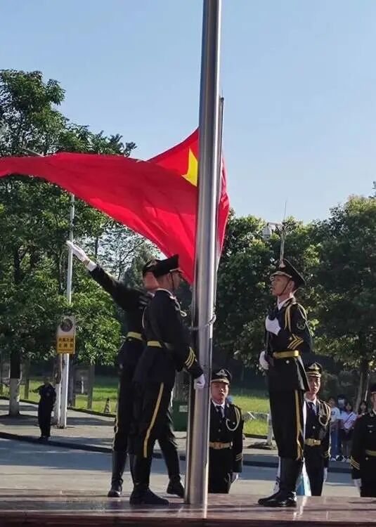 议程第一项:升国旗,奏国歌。在全体师生炙热的目光中五星红旗伴随着庄严的国歌冉冉升起。随后升校旗,唱校歌。