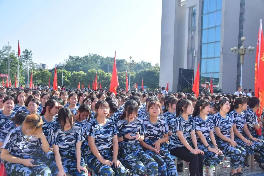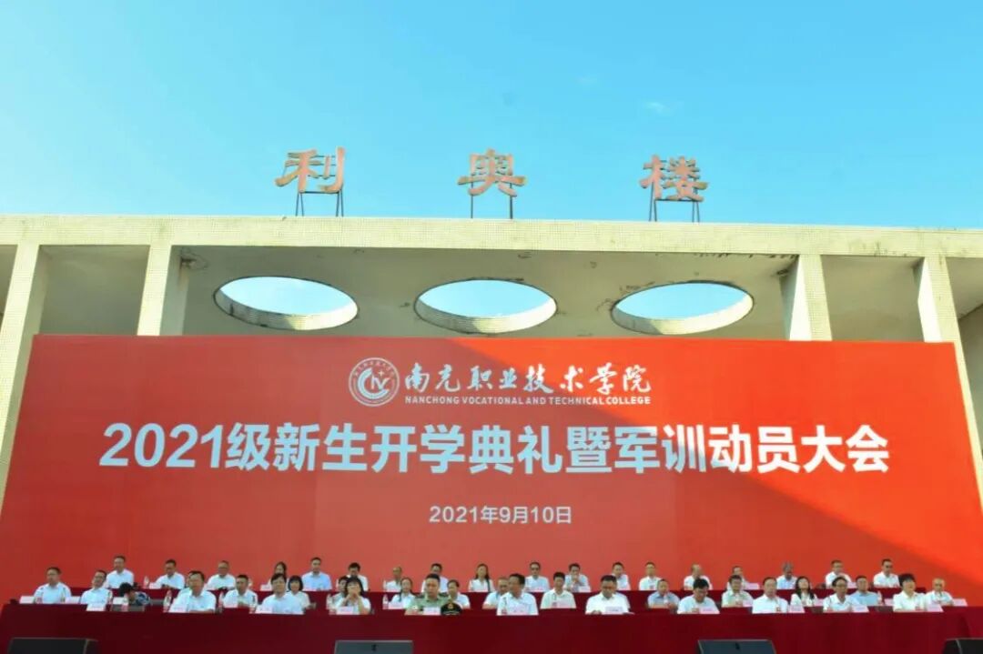 阳光正暖,微风不燥。南充职业技术学校于2021年9月10日8:30在学校利奥广场隆重举行了2021级新生开学典礼暨军训动员大会。