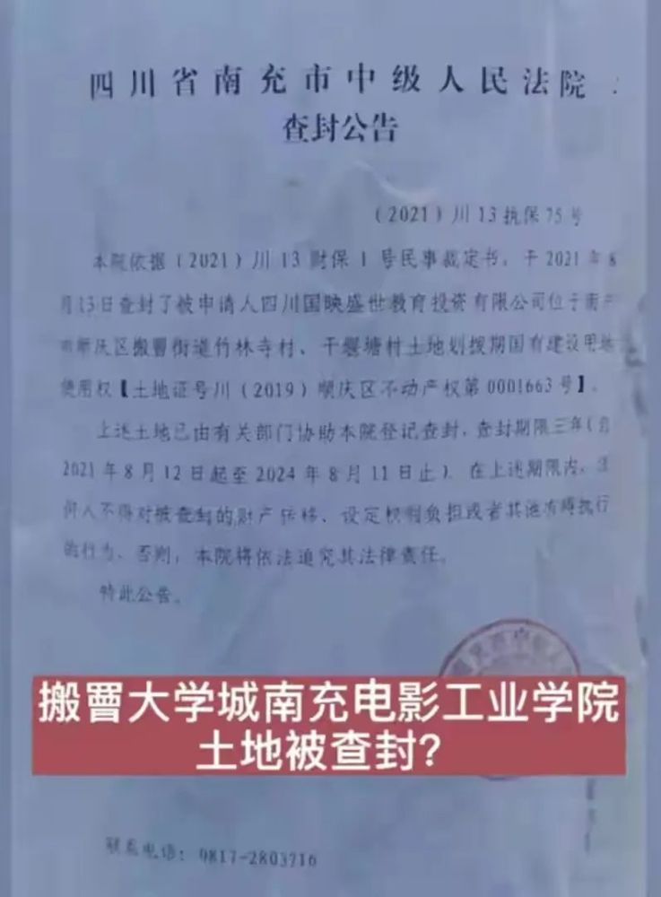 前段时间该校土地还被南充市中级人民法院给查封了,原因是学校投资方与施工单位的工程款债务纠纷。