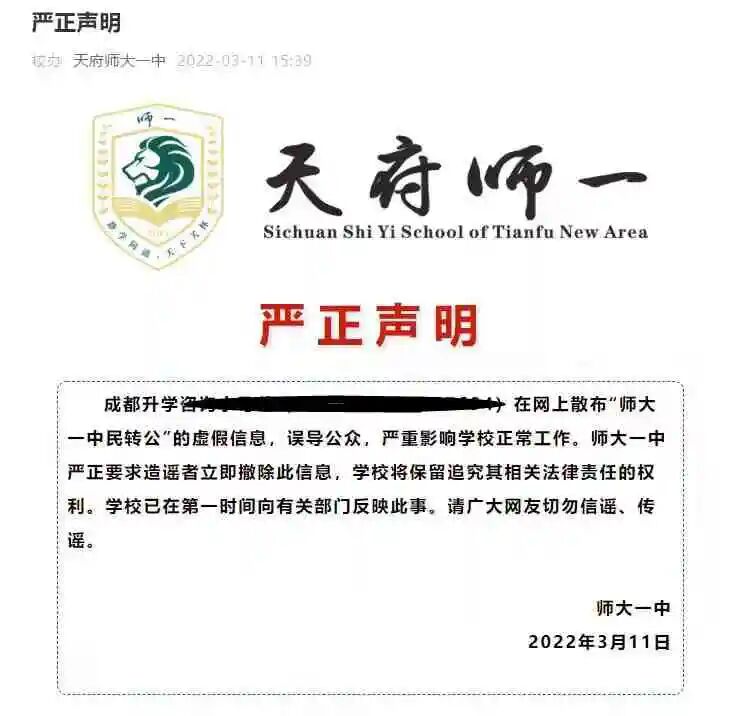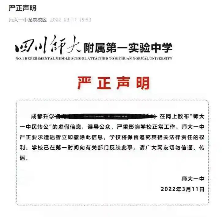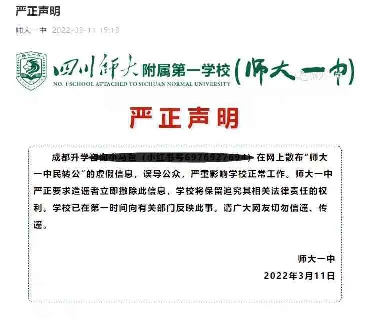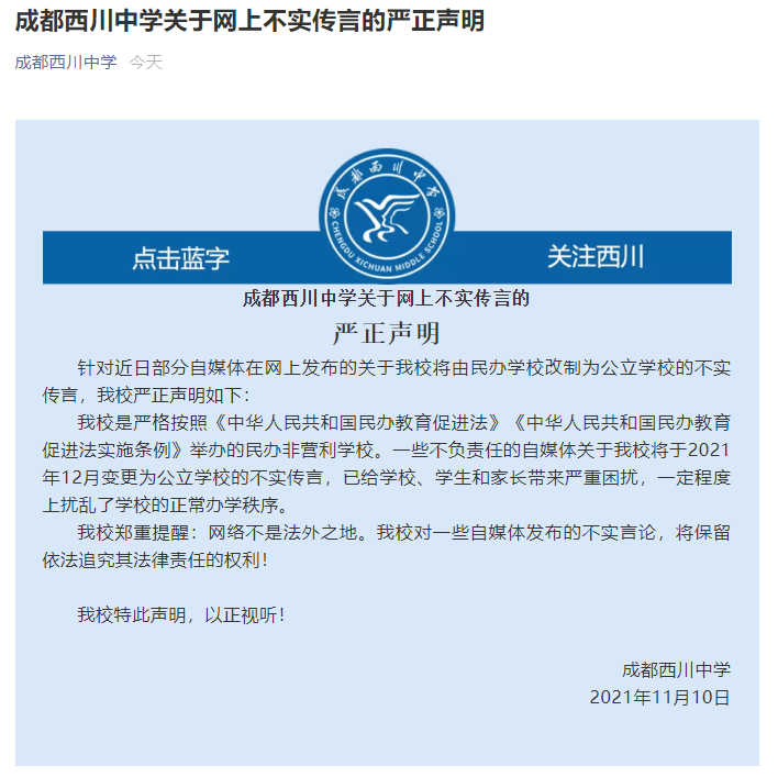 西川中学转公?学校发严正声明辟谣!