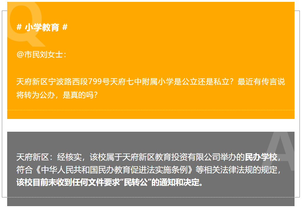 天府七中附小转公?天府新区:目前未收到任何文件要求“民转公”的通知和决定