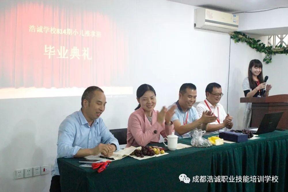 9月6日浩诚学校小儿推拿第814期培训班圆满毕业。典礼开始前,播放了毕业回忆录,共同回忆了这一个月来大家一起相处、学习的点点滴滴。从学员们不舍的眼中可以看出他们对母校栽培的感恩,对恩师谆谆教诲的不舍,对朝夕相处同学的留恋。而他们在浩诚老师们的期许中,将要迎来人生的新阶段,开启新的篇章。