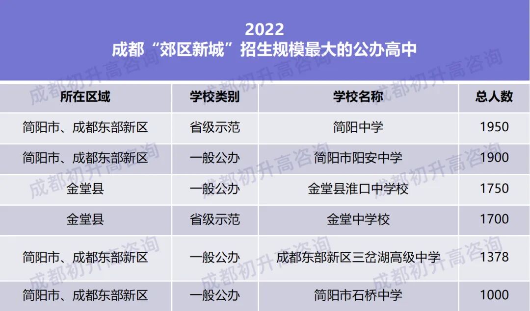 现在get了吧,2022年全成都市招生规模最大的高中包括所有的民办学校在内,它不在“5+2区”也不在“新六区”,而是处于郊区县的简阳中学,如此庞大的招生规模对于学校而言确实也非常考验其办学能力和管理能力。而相比之下,5+2区学校的招生规模则小了不少,也就更利于学校教学质量的提升和降低管理的难度。好了,今天就聊到这儿,想要了解更多升学信息,欢迎扫码加入下方初升高家长交流群(个性化升学疑问也可通过文末小程序在线提问或预约我的一对一咨询哦