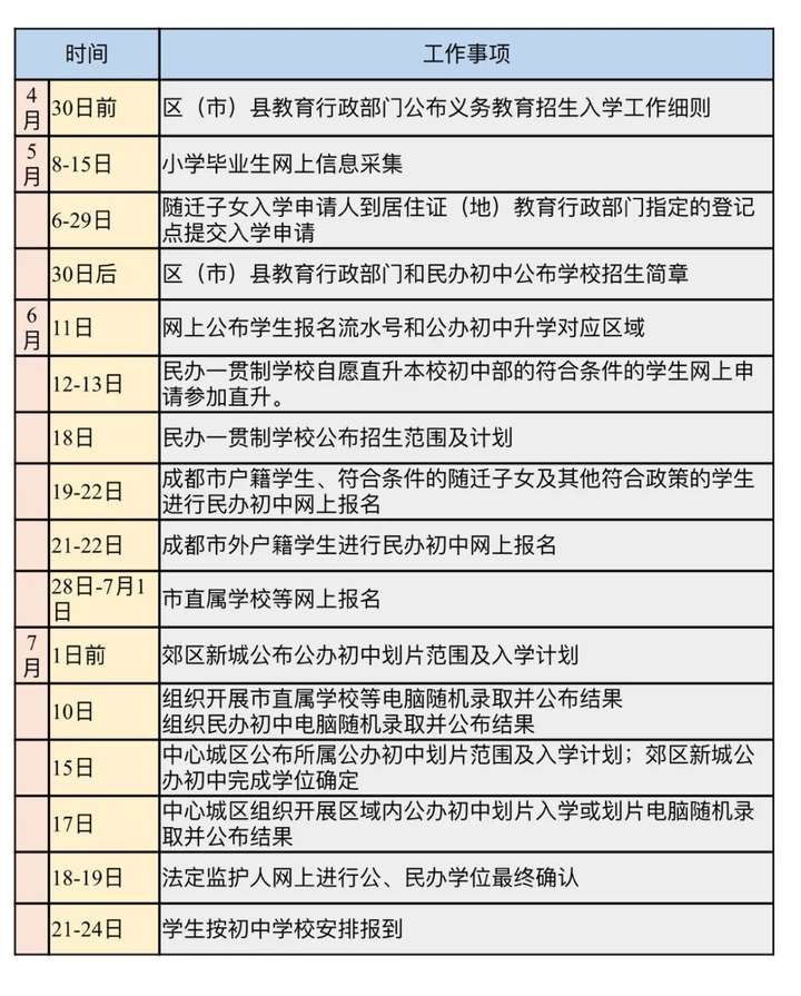 ▲ 随迁子女入学。随迁子女入学按照《成都市人民政府办公厅关于印发成都市居住证持有人及本市户籍跨行政区域居住务工人员随迁子女就读中小学校实施办法的通知》(成办函〔2018〕168号)相关规定办理。随迁子女应于5月份的工作日向居住证(地)所在教育行政部门指定的登记点提出入学申请,并按要求提供在成都市连续依法缴纳城镇职工基本养老保险满一年及已在该区(市)县连续居住满一年等有关合法稳定就业和合法稳定居住的证明。本市随迁子女就读政策保持相对稳定,从2021年起,申请随迁子女就读的办理材料、流程、时间与2020年一致,如有变更将提前通知。