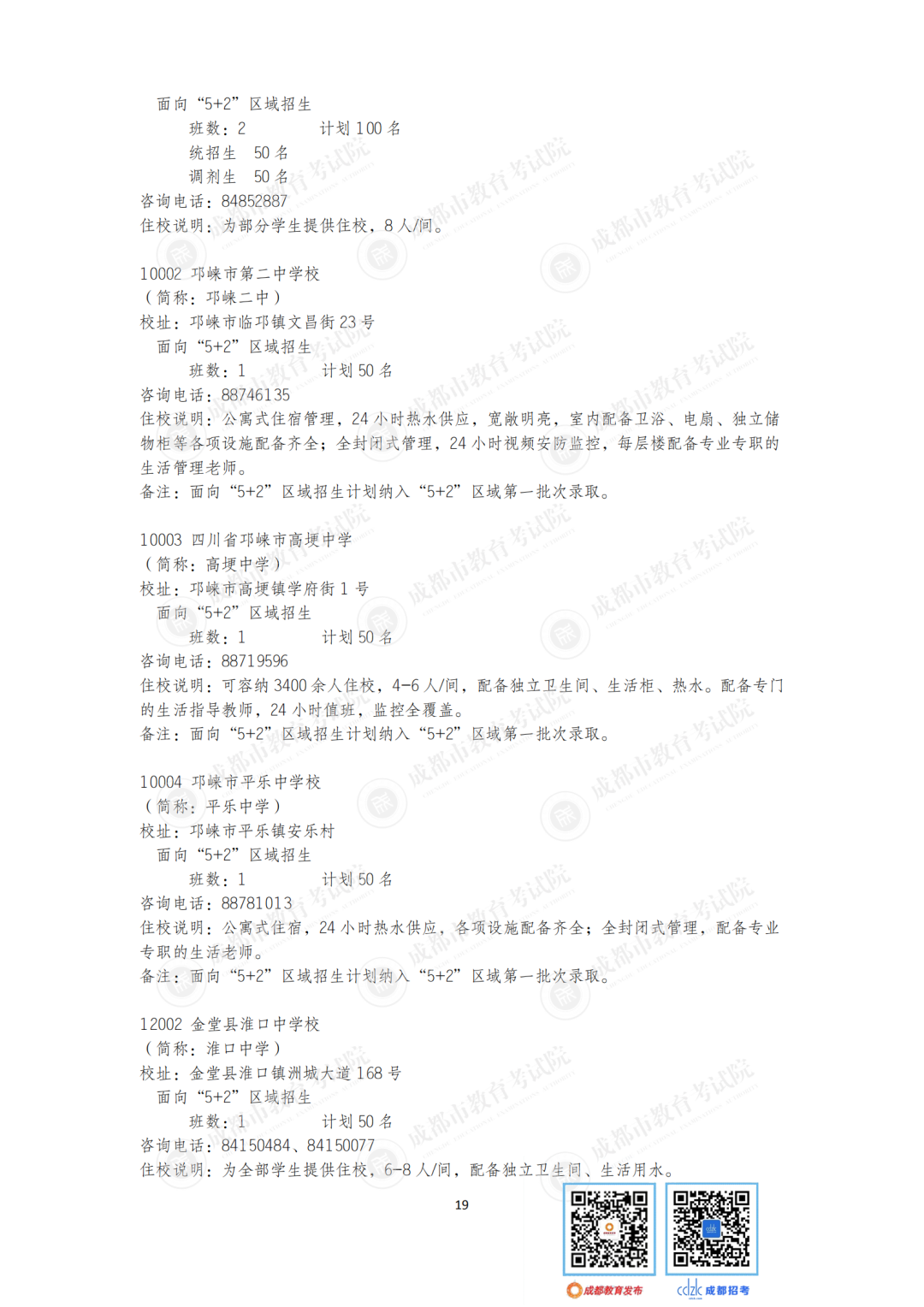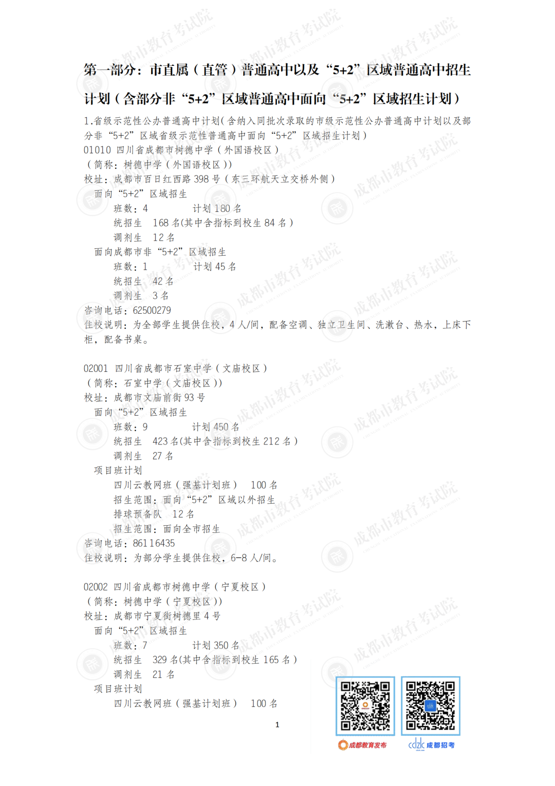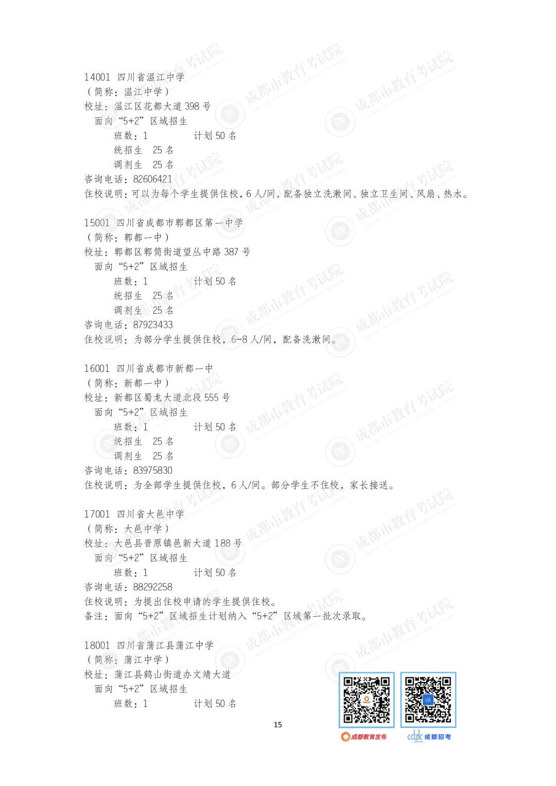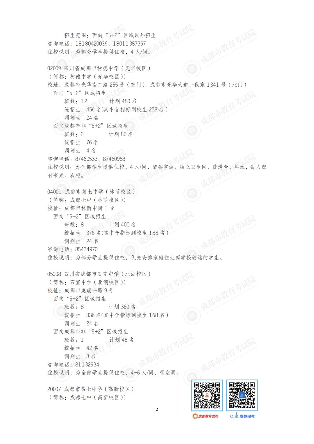 今年,石室中学、成都七中、树德中学等“5+2”区域的优质高中面向非“5+2”区域等招收42个班。成都市非“5+2”区域的优质高中面向“5+2”区域招收32个班1600人,较2020年增加6个班300人。郊区新城优质高中学校面向“5+2”区域招生的计划在第一批录取;龙泉驿区、青白江区、新都区、温江区、双流区和郫都区等6个区的优质高中学校面向“5+2”区域招生的计划在第二批和第四批录取。