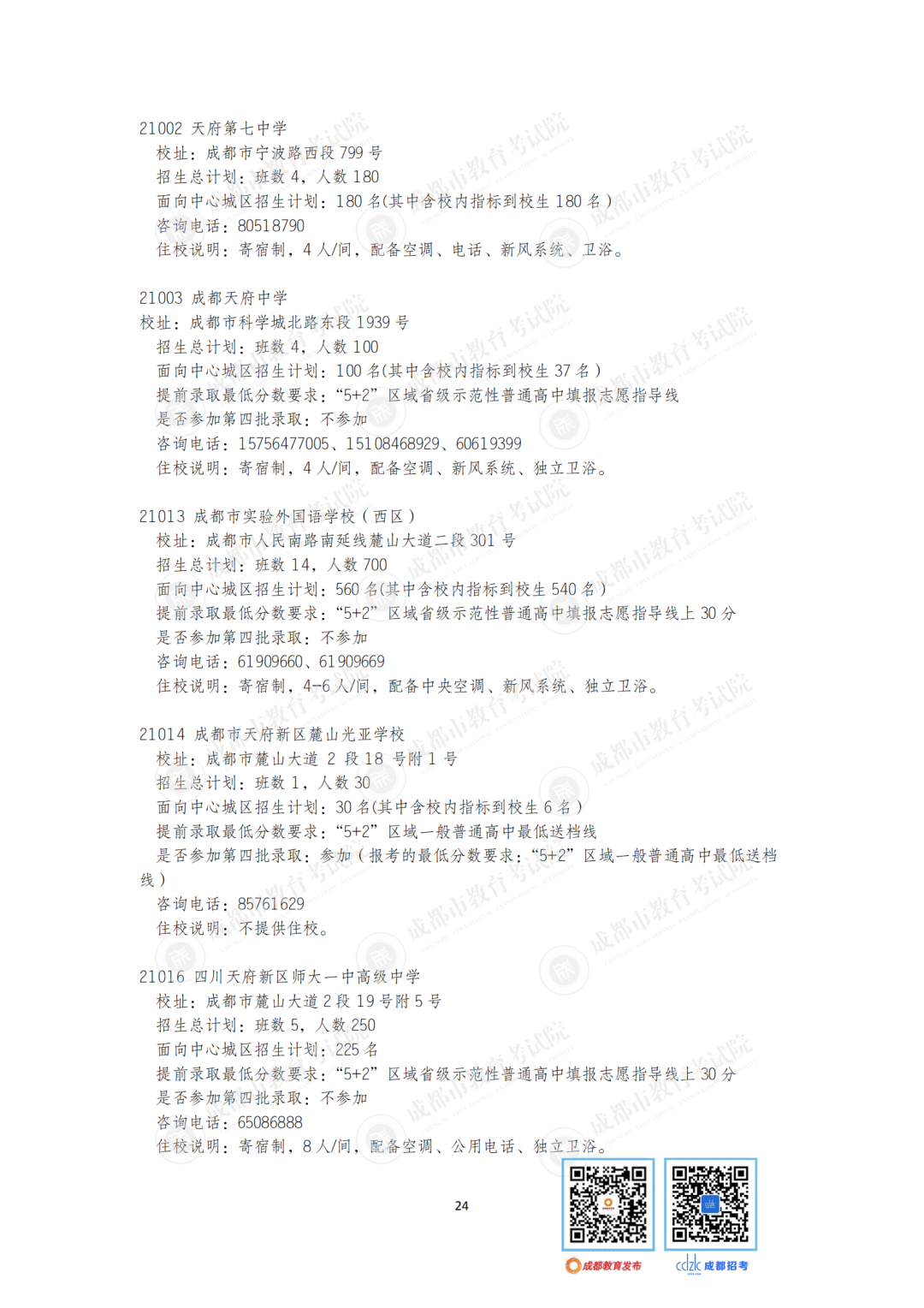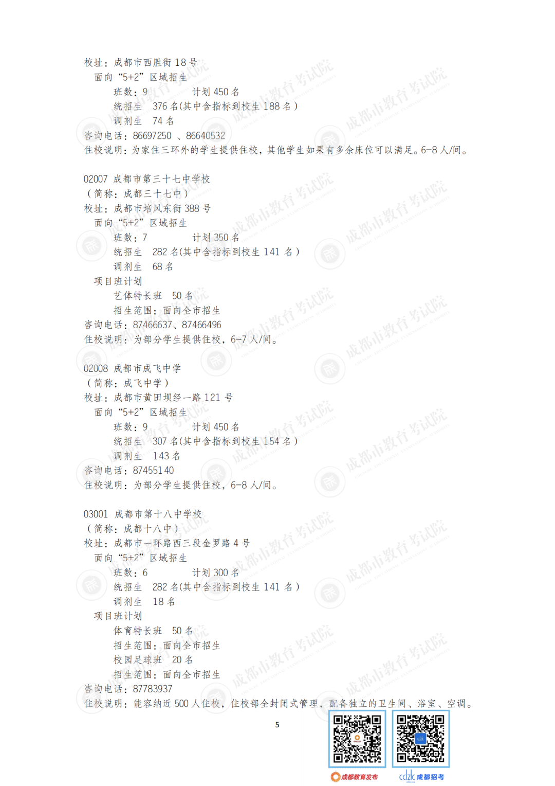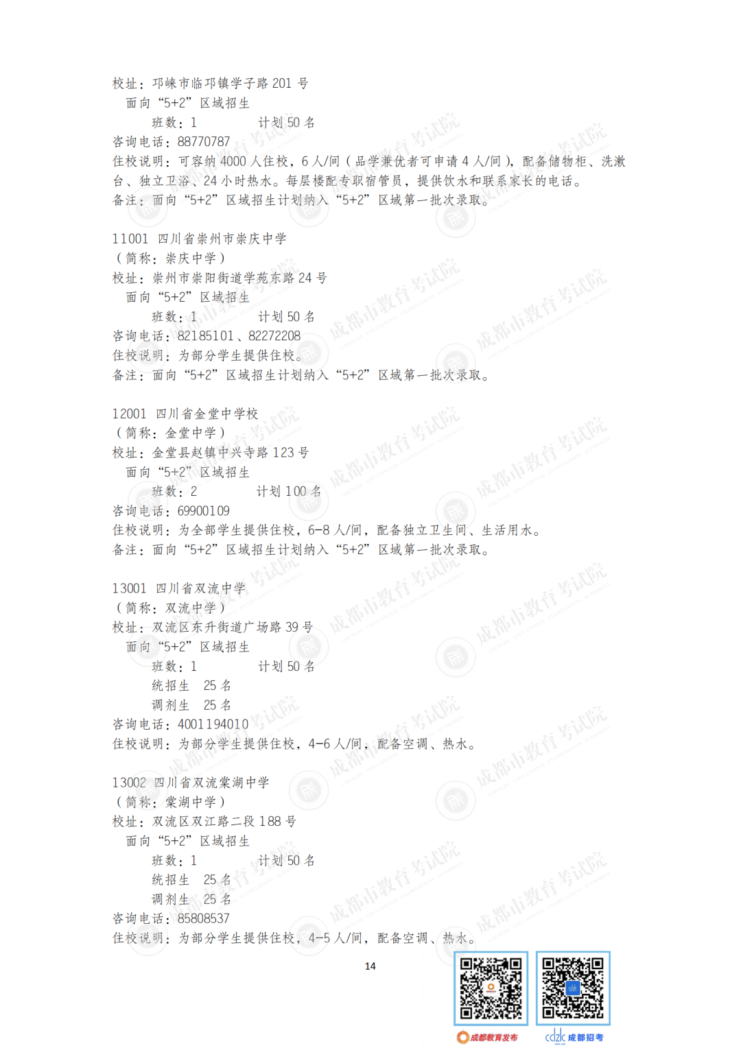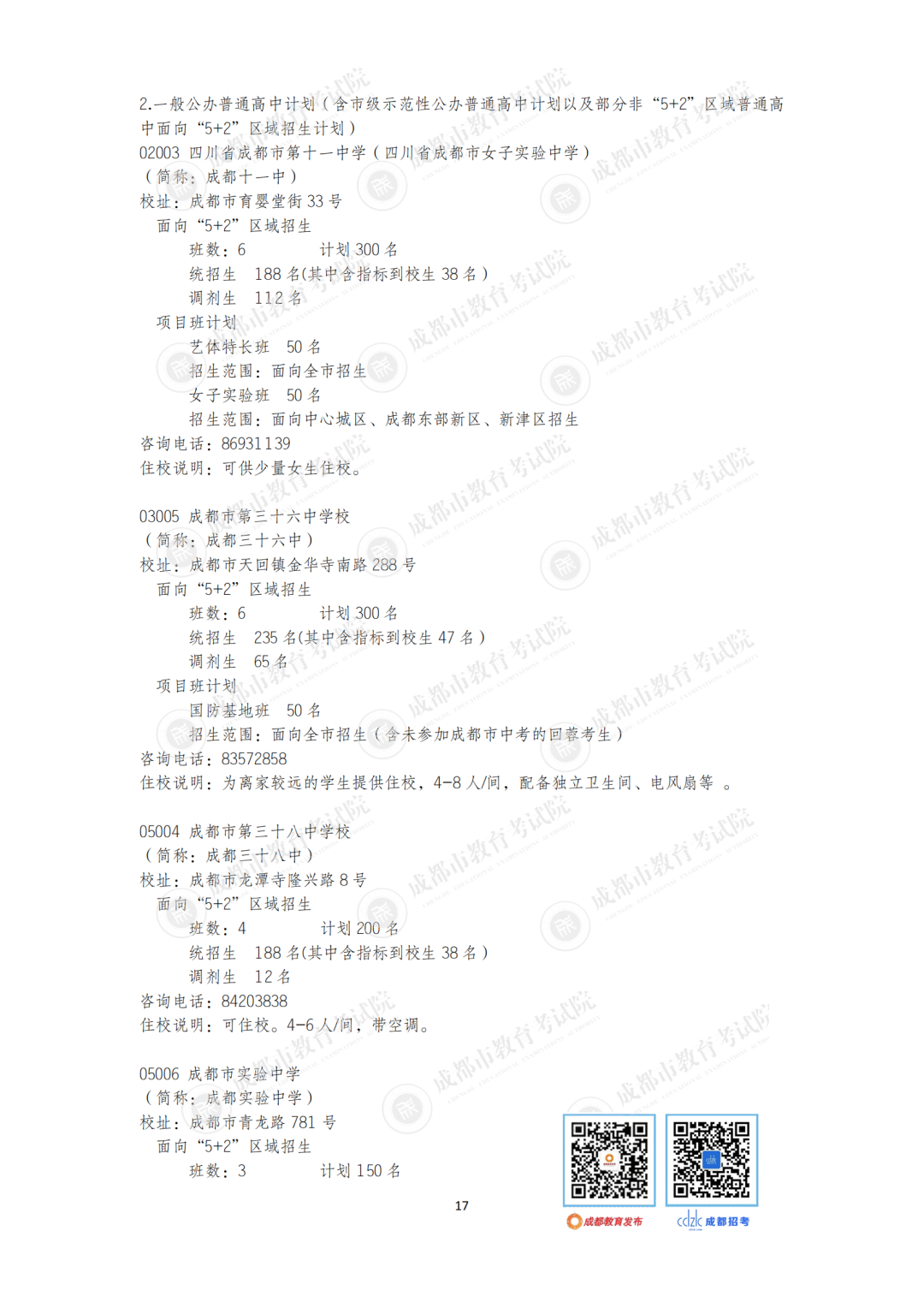 今年,石室中学、成都七中、树德中学等“5+2”区域的优质高中面向非“5+2”区域等招收42个班。成都市非“5+2”区域的优质高中面向“5+2”区域招收32个班1600人,较2020年增加6个班300人。郊区新城优质高中学校面向“5+2”区域招生的计划在第一批录取;龙泉驿区、青白江区、新都区、温江区、双流区和郫都区等6个区的优质高中学校面向“5+2”区域招生的计划在第二批和第四批录取。