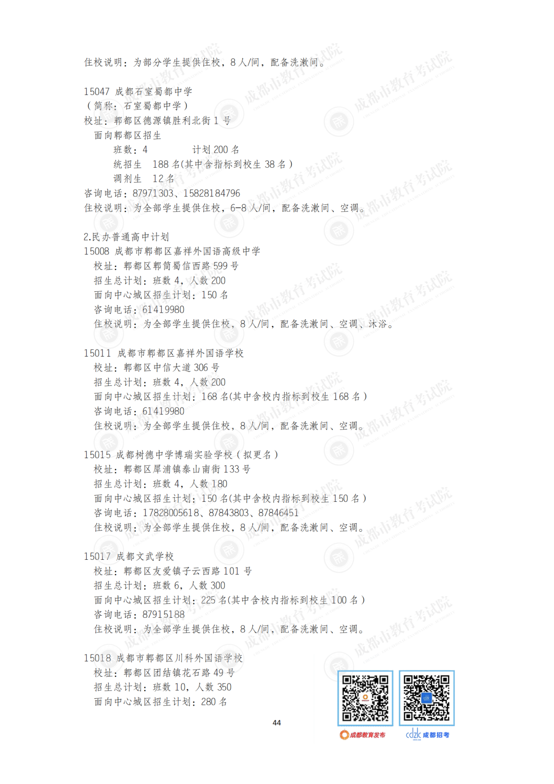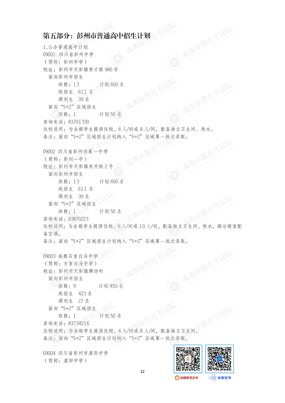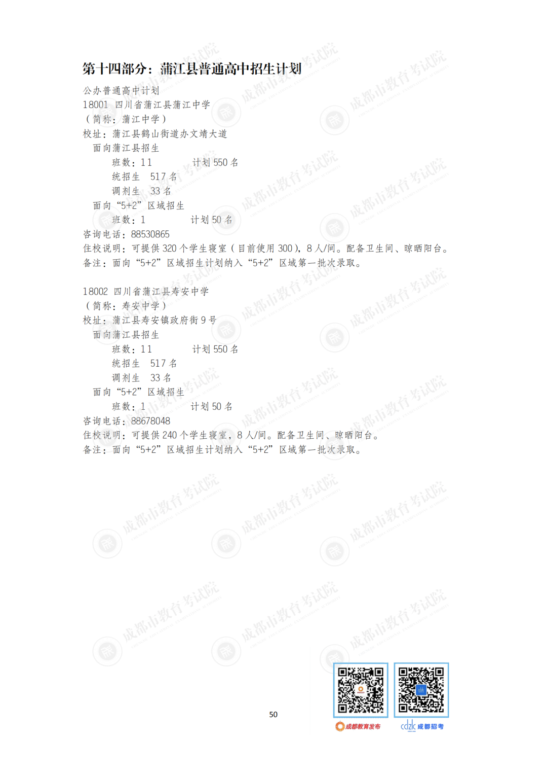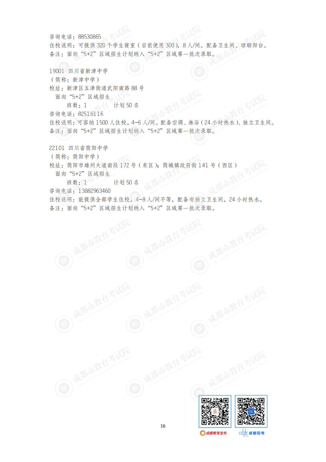 今年,石室中学、成都七中、树德中学等“5+2”区域的优质高中面向非“5+2”区域等招收42个班。成都市非“5+2”区域的优质高中面向“5+2”区域招收32个班1600人,较2020年增加6个班300人。郊区新城优质高中学校面向“5+2”区域招生的计划在第一批录取;龙泉驿区、青白江区、新都区、温江区、双流区和郫都区等6个区的优质高中学校面向“5+2”区域招生的计划在第二批和第四批录取。