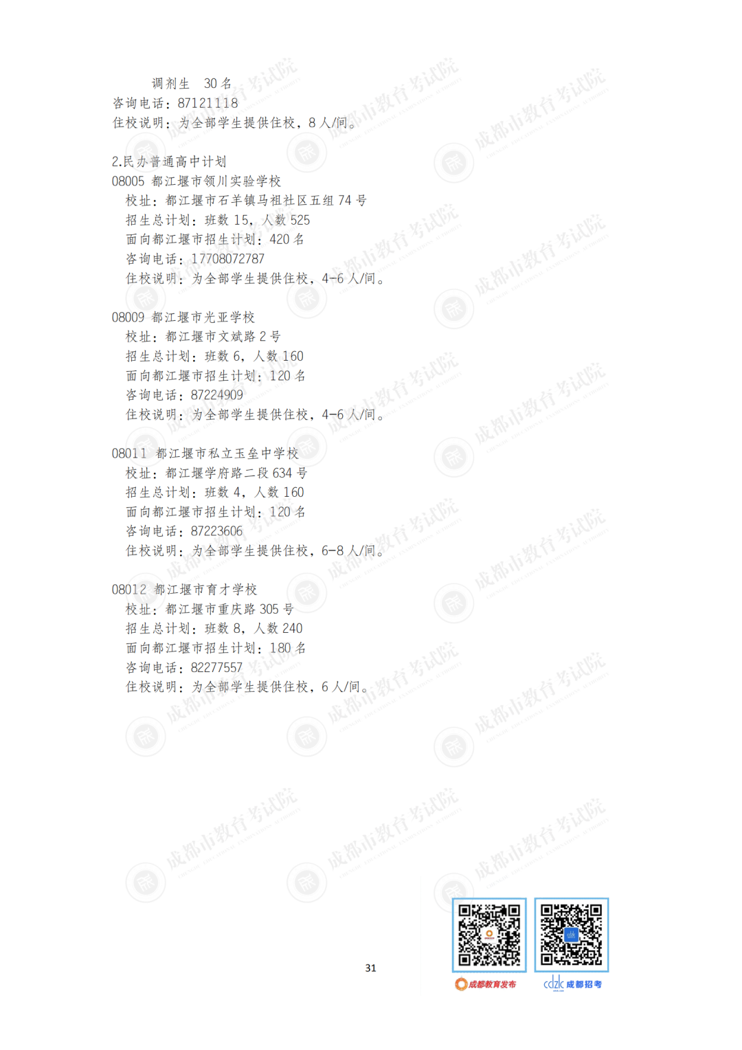 2021年全市中考报名人数13.15万人。按照教育部、四川省教育厅关于普职招生要求,结合成都实际,2021年全市普通高中招生计划为1670个班81228人,较2020年增加138个班,增招6468人。2021年全市普通高中招生计划为全市中考报名学生总数的62%,较2020年提高近2个百分点。