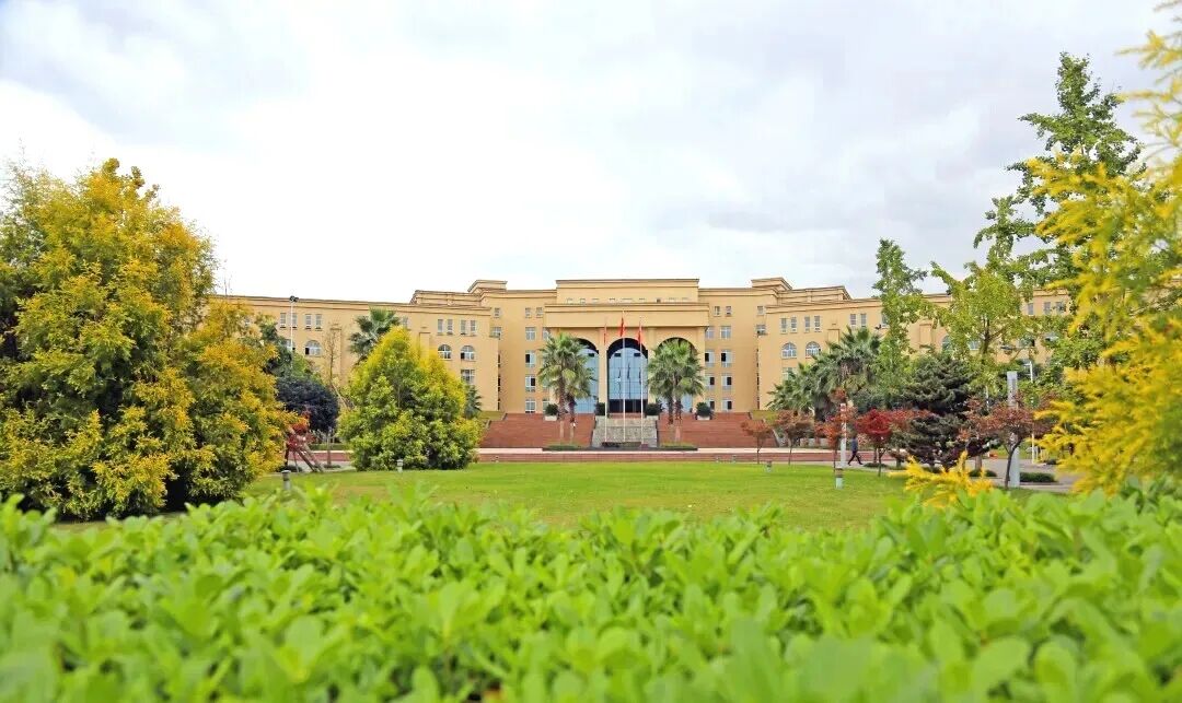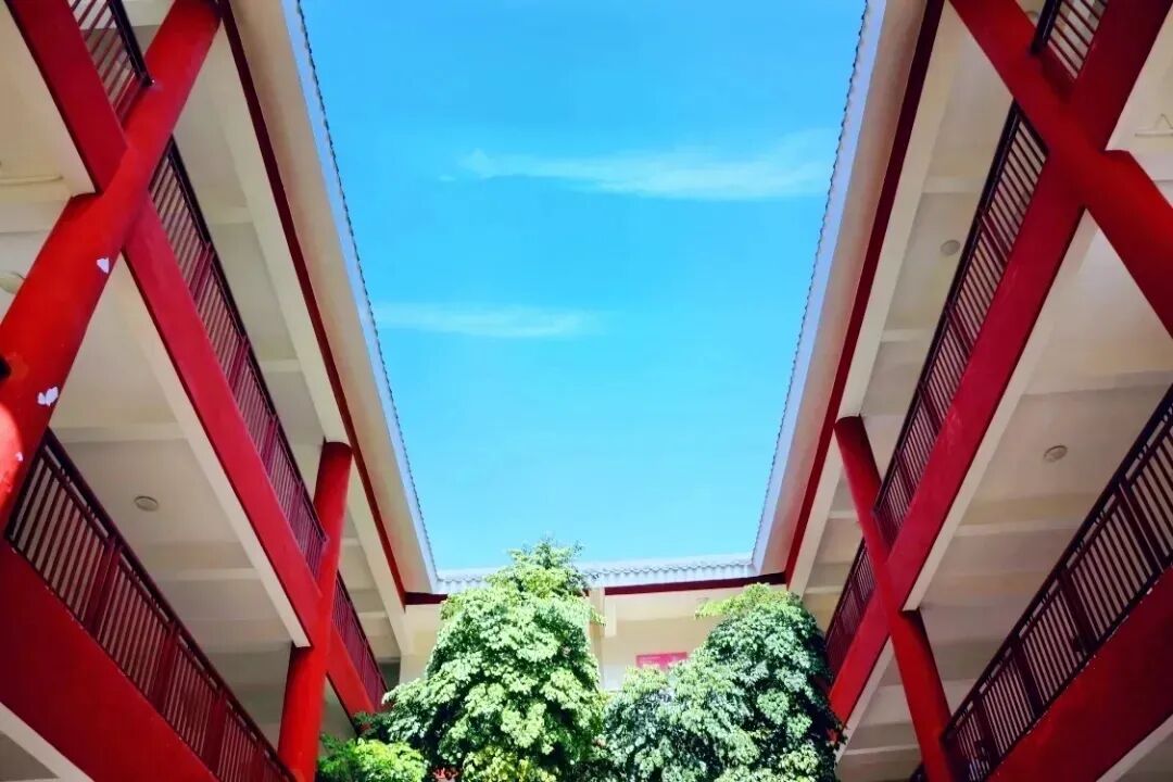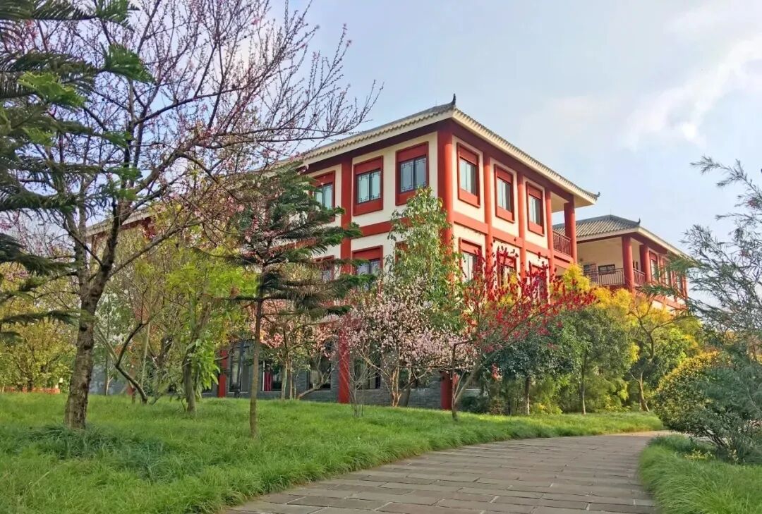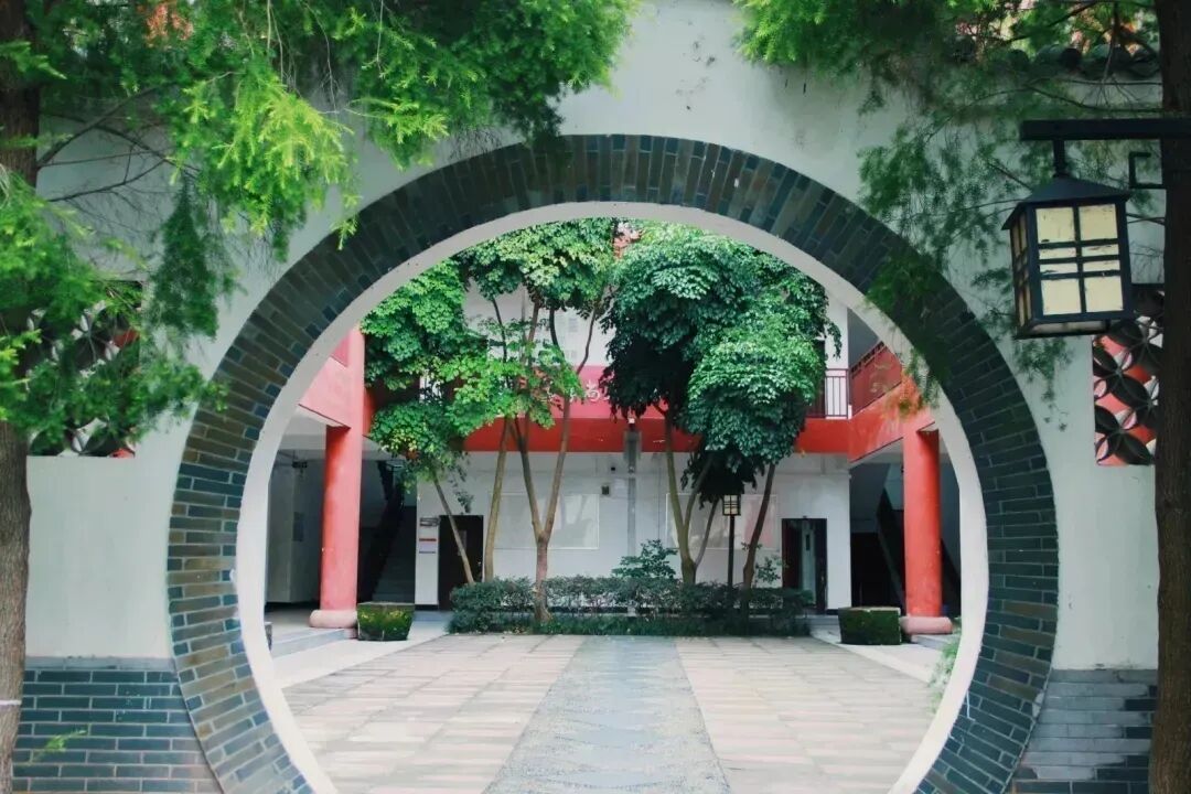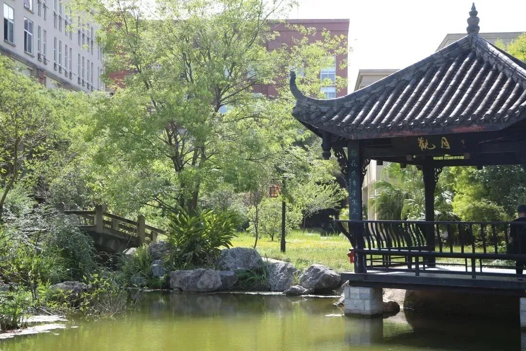 采用园林式建筑风格,校区绿化覆盖率高,建有校园艺术展览馆、书法艺术长廊等,打造绿色课堂。