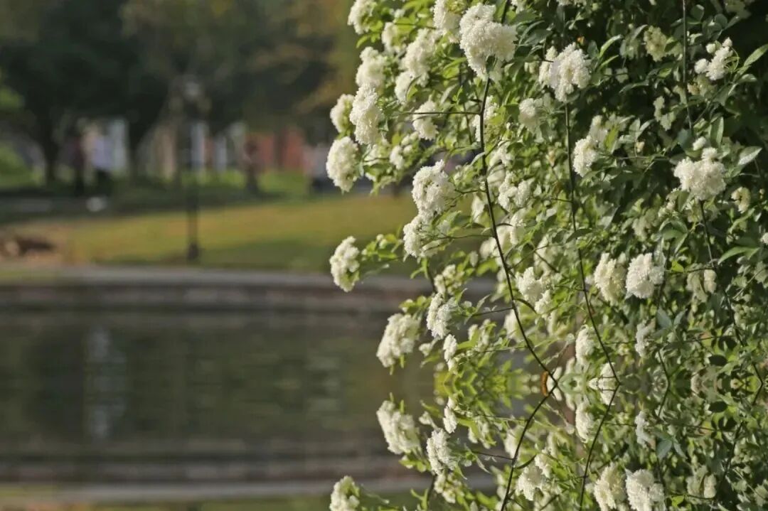 走进文理校园,满园风光映入眼帘:百花齐放,品种多样的灌木营造了层次分明、色彩富于变化的空间,装扮了和谐而又充满生机的生态校园。