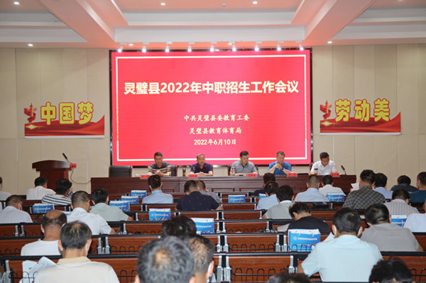 为贯彻落实国家、省、市、县政府关于加快职业教育发展的精神,推动全县职业教育与普通教育均衡发展,确保全面完成2022年全县中职招生任务,6月10日,全县中职招生工作会议在灵璧县高级职业技术学校召开。灵璧县教育工委委员、副局长王和平出席会议并讲话。灵璧县教体局职成科负责人孙武主持会议并宣读《灵璧县2022年中职招生工作实施方案》。全县各初级中学校长、副校长、年级组长及中职学校负责人参加会议。