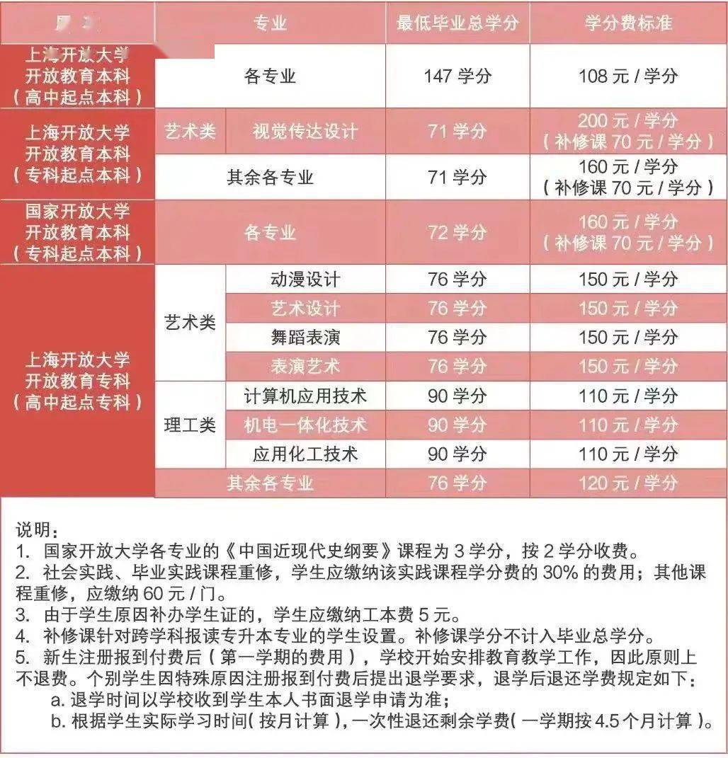 上海开放大学实行学分制管理,各专业每学期按学分收费。