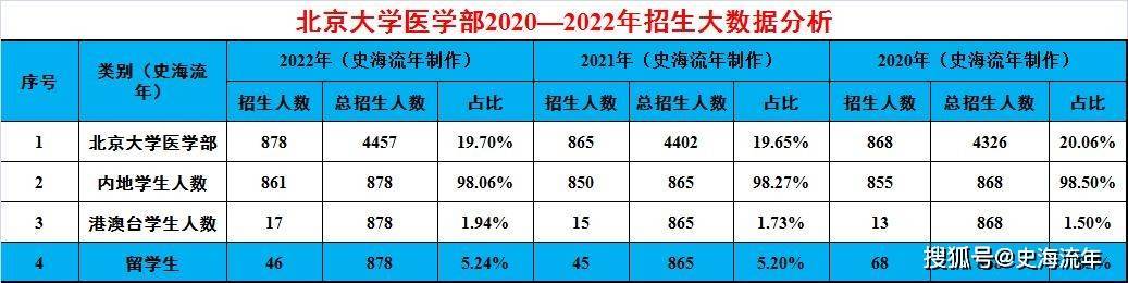 从录取总人数看,北京大学医学部2020年招生人数是868人,2021年是865人,2022年是878人。2022年北京大学医学部招生人数最多,超过2021年13人,超过2020年10人。