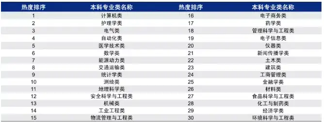 前瞻产业研究院公布的《2020年中国高考热门本科专业类排名及介绍》中,选取就业率、薪酬、读研率等指标,建立一套高考热门本科专业评价体系,评选出了高考热门报考本科专业类TOP30。