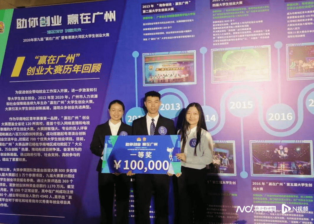 2020年9月,王帅彬的团队获得了“赢在广州”暨粤港澳大湾区大学生创业大赛一等奖。通讯员供图