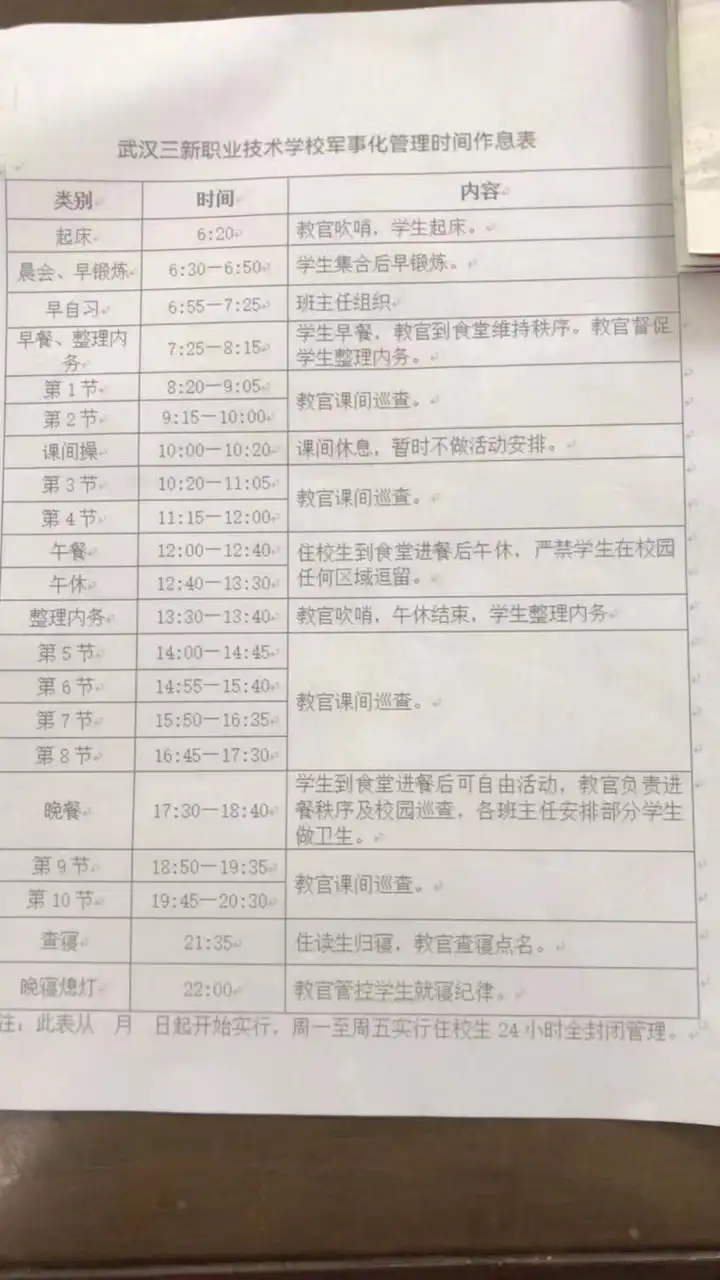 学校实行的是半军事化管理,我校施行双师协同管理制度,班主任与辅导员共同管理学生,班主任负责管理学生学习,辅导员负责管理学生行为习惯养成和生活问题。学校严格执行封闭管理和请销假制度,学生在校期间未经许可无法出校。