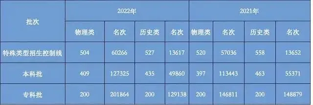 比如湖北2022年高考本科特殊招生线历史类527分,全省排名第13617,而去年历史类558分,全省排名第13652名;本科批次历史类435分,全省排名低第49860名,相比2021年本科批分数线排名提升5511个名次,相反物理类考生上本科的难度有所下降,各批次分数线排名都有所下滑。
