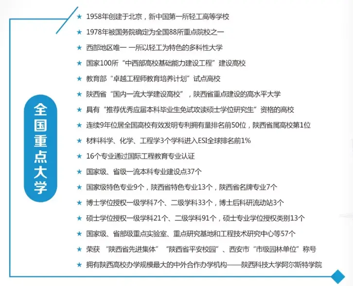 陕西科技大学是我国西部地区唯一一所以轻工为特色的多科性大学,是国家“中西部高校基础能力建设工程”建设高校,是“十二五”期间陕西省重点建设的高水平大学,是陕西省“国内一流大学建设高校”,是陕西省人民政府与中国轻工业联合会、中国轻工集团公司共同建设的重点高校。在六十多年的发展历程中,学校秉承“三创两迁”精神,恪守“至诚至博”校训,培养了16万名优秀人才,为国家建设和社会发展作出了重要贡献。