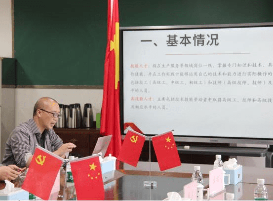 龙泉驿区就业服务管理局培训科副科长章波以“推动校企合作 促进产训融合 构建精准高效的高技能人才培育体系”为题向交流团详细介绍了龙泉区高技能人才现状及培养情况。成都汽车职校校长韦生键向交流团汇报了学校产教融合、人才培养、人才认定、技工教育等方面的情况。