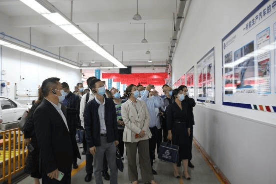 在成都汽车职业技术学校校长韦生键、常务副校长邓南虎等陪同下,交流团一行深入学校内部,实地考查学校汽车实训中心、产教融合中心等,详细了解学校专业建设、实训基地建设、产教融合、校企合作等方面的情况。