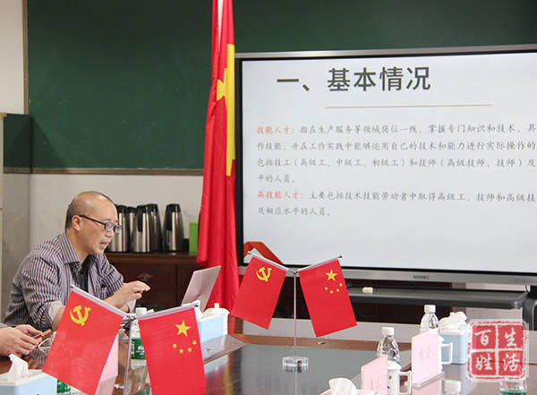 龙泉驿区就业服务管理局培训科副科长章波以“推动校企合作 促进产训融合 构建精准高效的高技能人才培育体系”为题向交流团详细介绍了龙泉驿区高技能人才现状及培养情况。成都汽车职校校长韦生键向交流团汇报了学校产教融合、人才培养、人才认定、技工教育等方面的情况。