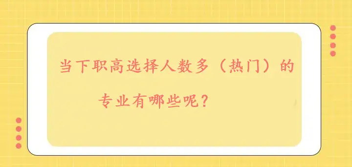 hello,大家好,我是小逸,今天给大家分享的主题是:职高有哪些专业?职高简称职业高中,招收的对象大多是初中毕业没考上高中的,国家大力整治发展职业教育,这几年职高情况好很多。很多初中学生落榜了,家长们也都开始联系职高学校,准备给孩子报名,但职高和普高不一样的是,就读职高前需要选择一门专业,对此事很多家长乃至学生都不是很懂,不知道职高学校有哪些专业,更不知道怎么选择,所以在这儿小逸给大家分享下,并且给大家推荐专业以及当下大多数学生选择的专业,方便大家选择!