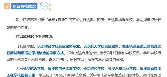 长沙中考,中职学校的录取是在第四个批次,可以填写20个平行志愿,也就可以选20个专业。