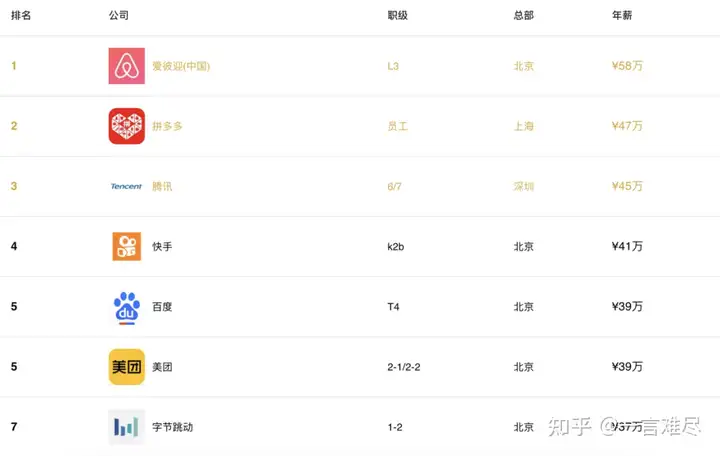 对应各公司起步薪水情况自查: