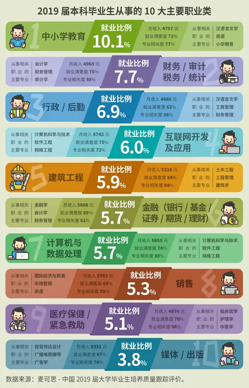 近日,麦可思研究院发布了最新的中国大学生就业报告