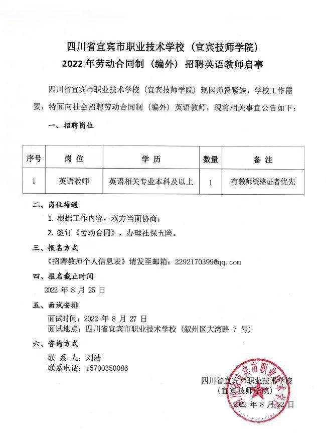 原标题:宜宾市职业技术学校(宜宾技师学校)2022年招聘